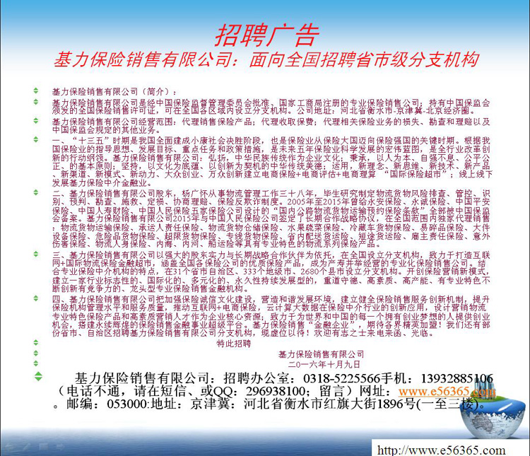 基力保险销售有限公司招聘广告